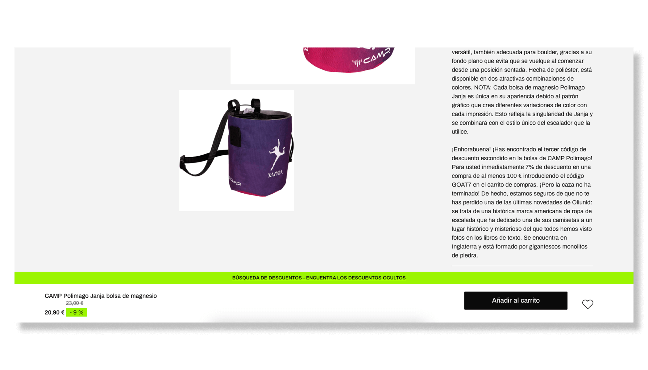 En la página de las Solution Comp WMN, al final de la descripción del producto, encontrarás el segundo código de descuento y el segundo acertijo.