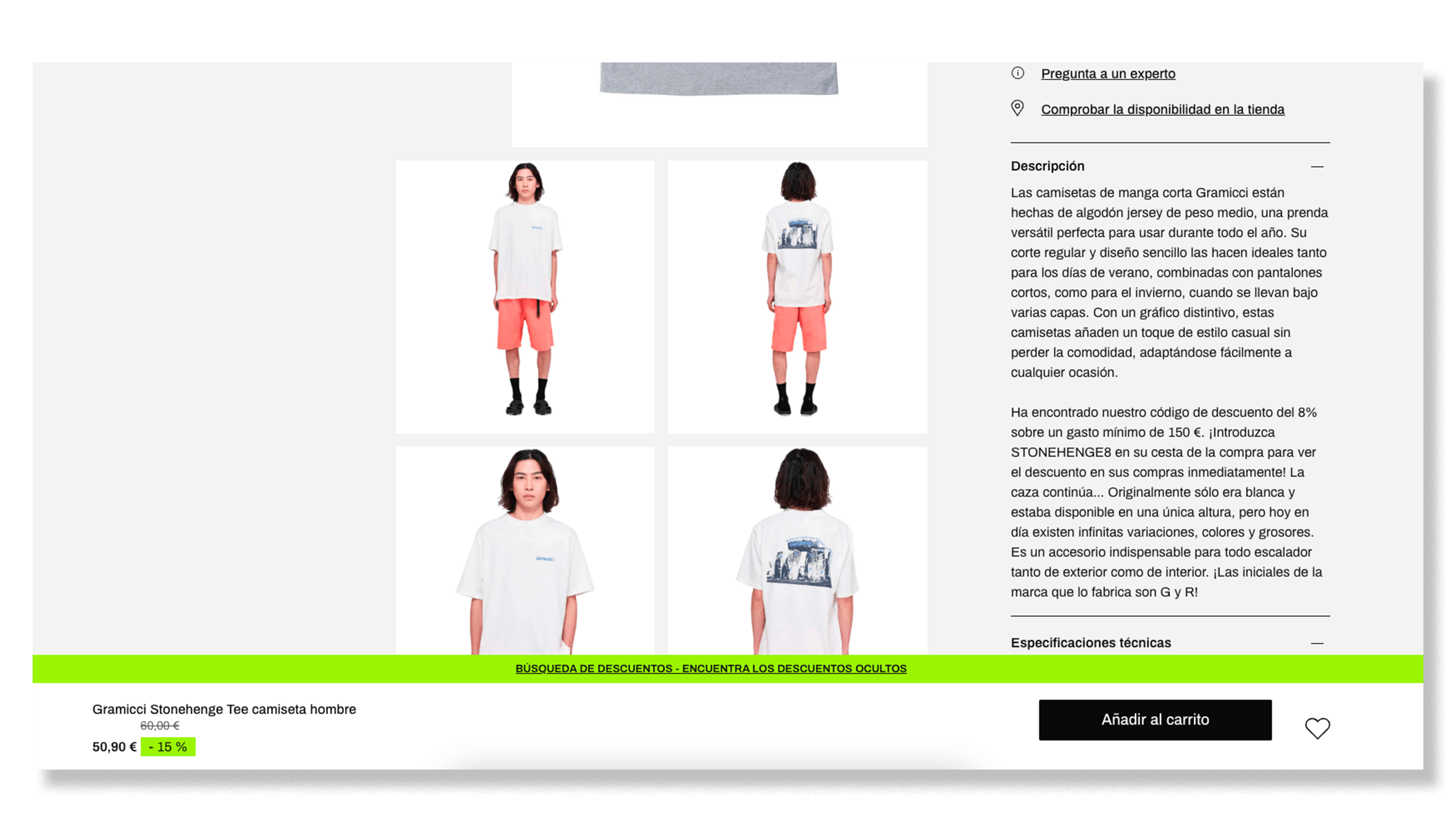 La bolsa de magnesio CAMP desbloqueaba otro código de descuento y te daba otra pista: se trataba de una histórica marca de ropa de escalada estadounidense, que ha dedicado una de sus prendas a un lugar místico Naturalmente, se trata de la camiseta Stonehenge de Gramicci.