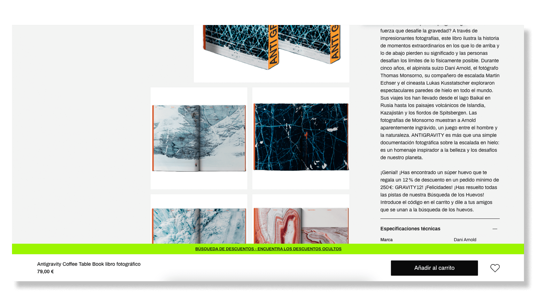 ¡El esparadrapo para dedos nos llevó a la última pista: el libro de fotos Antigravity, que te daba un código de descuento del 12%!