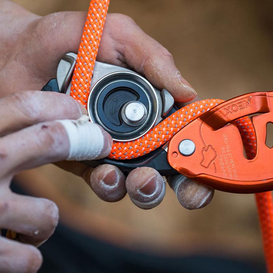 Si vamos a escalar una vía de un solo largo que sigue una fisura vertical donde podemos colocar protecciones muy seguras, también podemos utilizar el asegurador de frenado asistido clásico que usamos para otro tipo de vías de un solo largo. Dependerá de nosotros suavizar la caída para no ejercer demasiada fuerza sobre las protecciones colocadas y gestionar el ascenso de nuestro compañero con mayor conciencia. Sea cual sea el dispositivo de aseguramiento que elijamos, siempre debemos comprobar que es compatible con la cuerda y el mosquetón para asegurador.