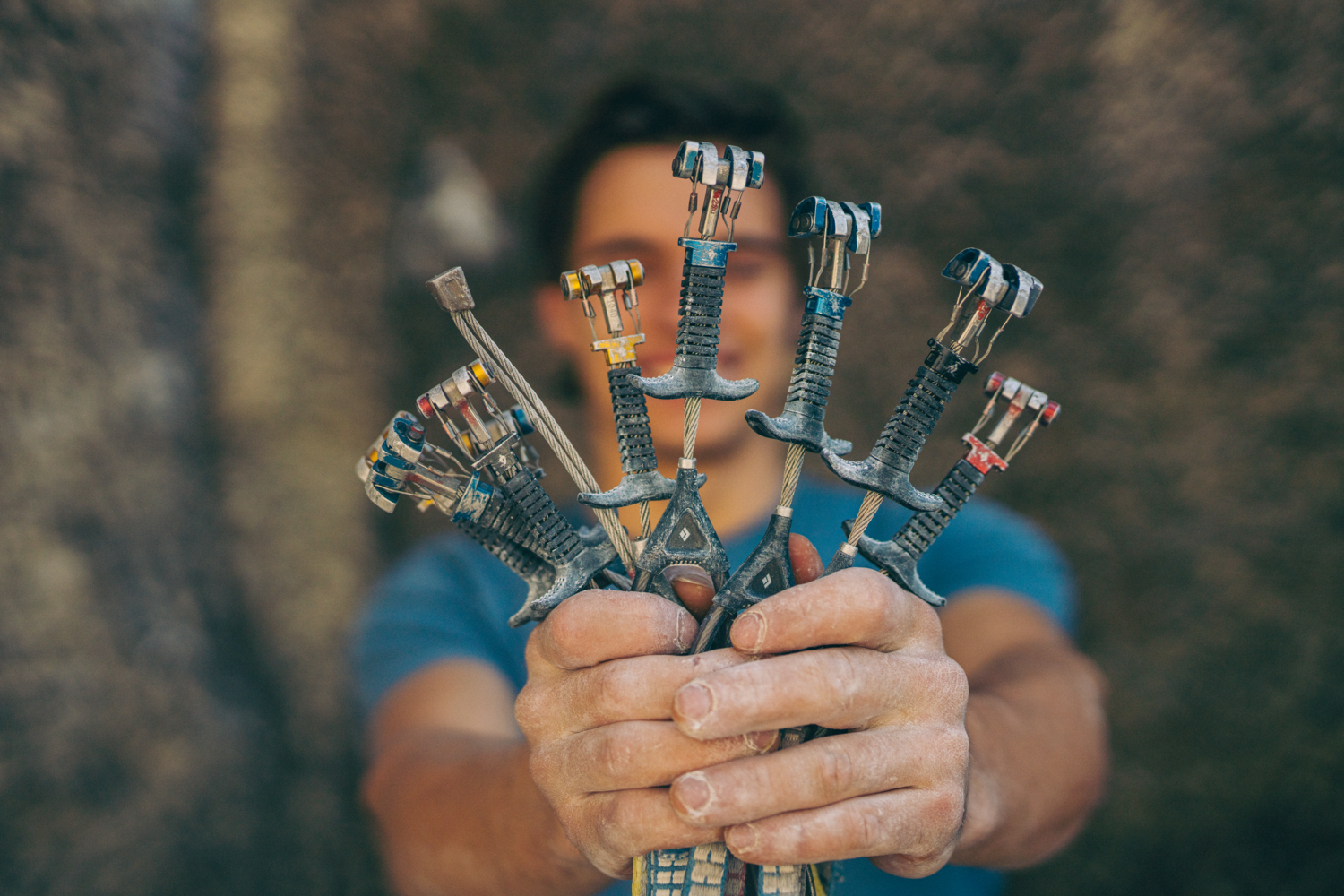Los friends son extremadamente sólidos y fiables, y pueden marcar la diferencia en ciertos tipos de fisuras donde las tuercas no ofrecen suficiente seguridad. A diferencia de estas últimas, que funcionan encajándose mecánicamente en la roca, los friends actúan mediante un mecanismo de apertura y cierre de levas que, al expandirse, crean fricción con la roca. Para un primer juego de escalada tradicional, bastarán cuatro o cinco friends de diferentes tamaños.