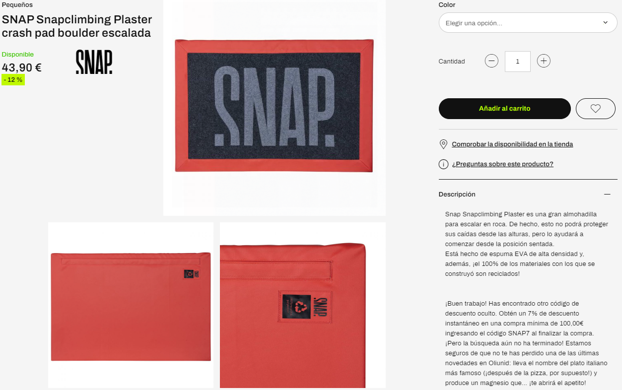 El crash pad más pequeño de todos es el Plaster de Snap, ¡un inicio sentado para tener siempre contigo y comenzar con los zapatos limpios!