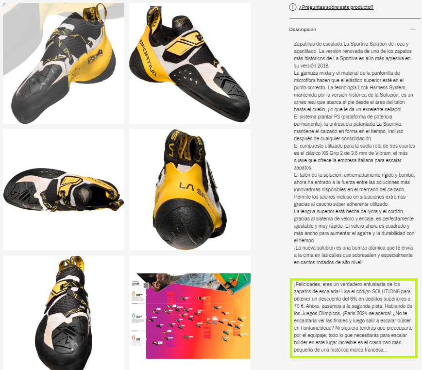 El primer indicio fueron los zapatos utilizados por el olímpico Jakob Schubert: ¡naturalmente se trataba de las Solution de La Sportiva! En la página de las Solution, al final de la descripción del producto, encontrabas el segundo código de descuento y el segundo acertijo