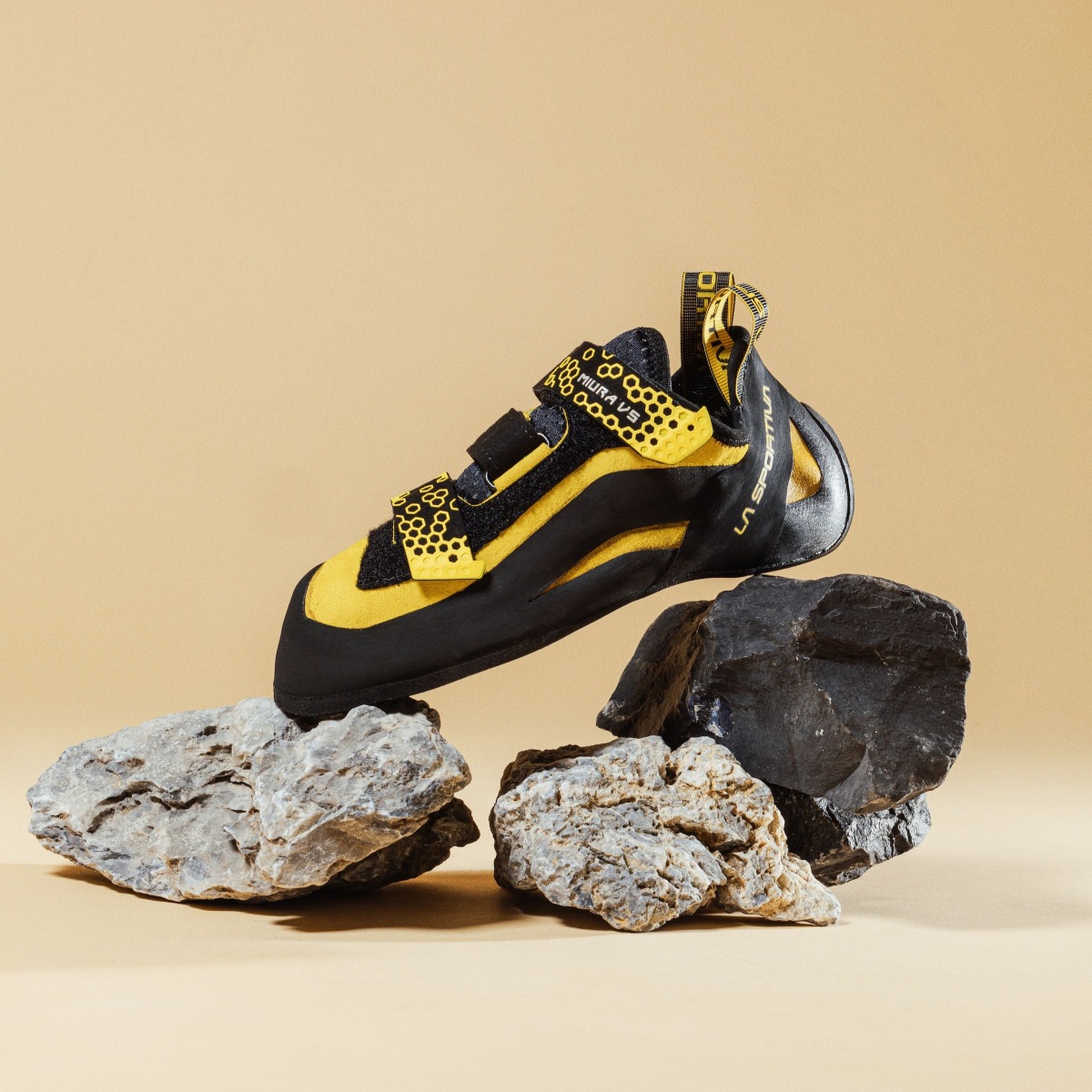 Comencemos con las icónicas Miura VS de La Sportiva, que llevan en alto - en la versión clásica - los colores amarillo y negro simbólicos de la marca de Trento. Las Miura VS son inmejorables en la precisión en punta, cuando necesitas confiar en los apoyos en los huecos más típicos de la piedra caliza. Su construcción con suela completa también las hace perfectas para todos los usos verticales, donde un poco de apoyo y rigidez adicional pueden ayudarte a empujar con más fuerza en la parte anterior del pie. Las Miura están realizadas a mano y son hechas de cuero, material que tiene la propiedad de moldearse alrededor de su pie inmediatamente después de los primeros usos, dándole una agradable sensación de enrollamiento. Esos pies de gato son ideales para los escaladores muy exigentes y te garantizan alto rendimiento sobre diferentes estilos de escalada: excepcionales en placa y potentes en las competiciones.