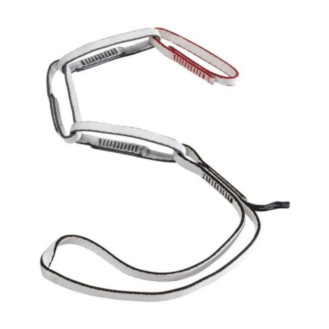 Las cintas exprés son una parte indispensable de un verdadero "kit completo" y pueden desempeñar diversas funciones tanto en el alpinismo como en la escalada deportiva o tradicional. En el amplio mundo de las cintas, se incluyen los mosquetones clásicos que puedes usar para crear estaciones, las cadenas múltiples, las daisy chains, las longe y las cintas de transmisión, pero en la gran familia del equipo textil también encontramos otros accesorios como estribos y disipadores de energía para kit de ferrata.