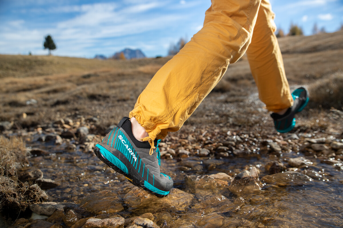 Las zapatillas de aproximación tienen una banda de rodadura más delgada, estudiada hasta el más mínimo detalle para darte un óptimo agarre sobre la roca y sobre los senderos más boscosos. Su polivalencia va desde el acercamiento en el acantilado a las vías ferratas y a los primeros tramos de escalada "fácil" mientras alcanzas un multipitch: por esto deben ser ante todo adherentes al suelo.