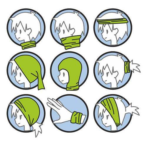 Tienes la posibilidad de usar esta banda de muchas maneras: bufanda para el cuello, bandana, cinta, debajo del casco, gorro, pasamontañas.