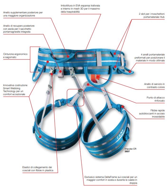 CAMP Impulse CR es un arnés de escalada muy polivalente y perfecto tanto para probar tus proyectos en la roca como para vías ferratas.