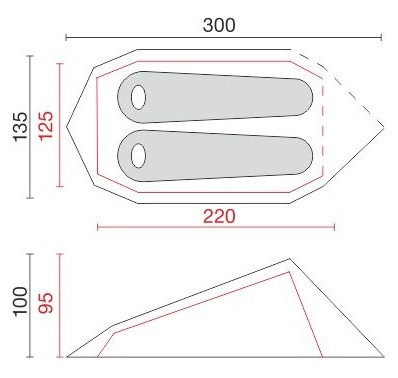 Está equipada con dos tejidos, uno interior de malla para garantizar una excelente ventilación y uno exterior de nylon ultraligero con una amplia columna de agua (2000 mm). También el suelo tiene una excelente impermeabilidad, 5000 mm.