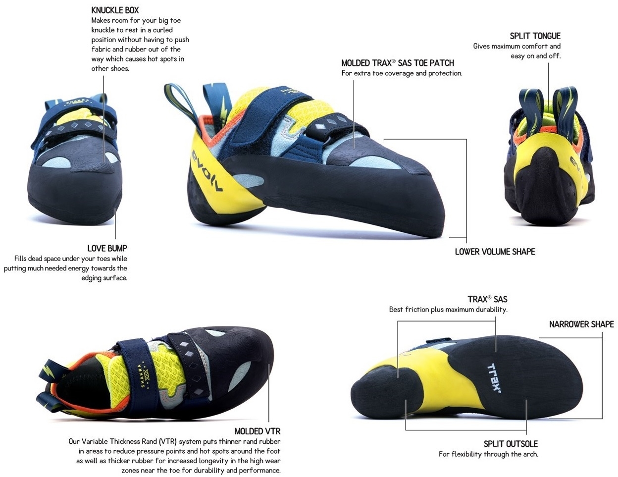 Evolv Shakra son unas zapatillas de escalada muy eficientes, diseñadas para garantizarte el máximo rendimiento tanto en placa como en las rutas y boulders más desplomados!