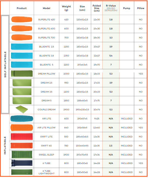 Bluenite es autoinflable y se infla solo a través de una única válvula de latón recubierta de goma, lo que permite utilizarlo incluso en temperaturas más frías.