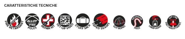 La tienda es fácilmente montable gracias a los dos postes de duraluminio de color diferenciado. La puerta de entrada con mosquitera se encuentra lateralmente mientras que la ventilación está situada en la parte delantera.