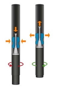 Se trata de un sistema de bloqueo interno seguro, confiable y ligero. El sistema Flexy garantiza un balanceo óptimo del bastón. El perno de aluminio y su expansor de Delrin garantizan, con un esfuerzo mínimo al cerrar, una sujeción muy superior a los 100 kg, garantizando seguridad durante el uso.