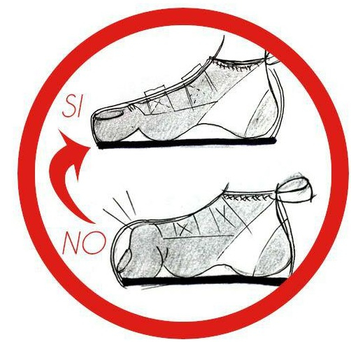 La comodidad del ajuste también se debe al hecho de que ha sido diseñada para ofrecer un excelente soporte sin tener que bajar demasiado de número; los dedos dentro deben estar estirados y no demasiado doblados.
