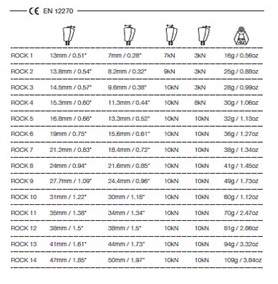 Perfectas para escalada clásica trad, cuentan con una cabeza anodizada y un lado cónico, conveniente para una selección rápida cuando estás en la pared.